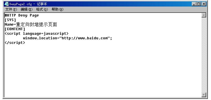 2. 打开config/DenyPage文件夹,用记事本编辑一个“封堵提示页面”的配置文件。