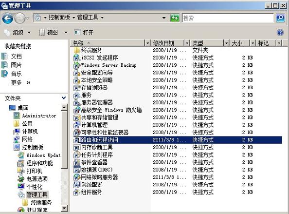 1. 打开“控制面板”,进入“管理工具”找到“路由和远程访问”