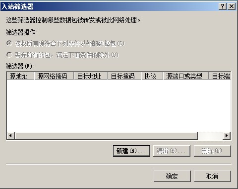 4. 选择“丢弃所有的包,满足以下条件的例外”,点击“确定”