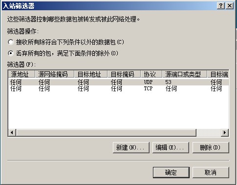 经过上述配置,这样就禁止了除53端口外所有的UDP通讯。