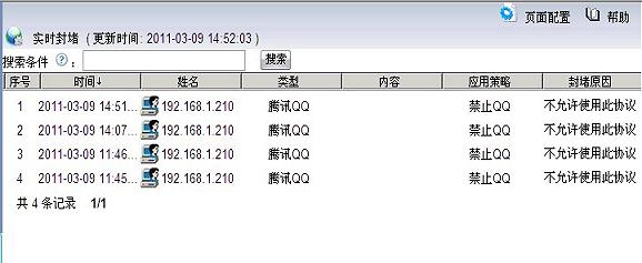 这样我们就可以利用嗅探狗来禁止QQ,封堵效果如下图所示,登陆QQ时“实时封堵”中就会有记录。