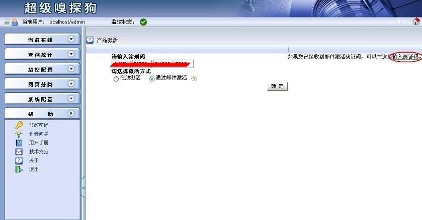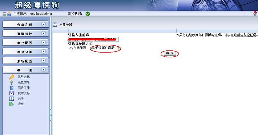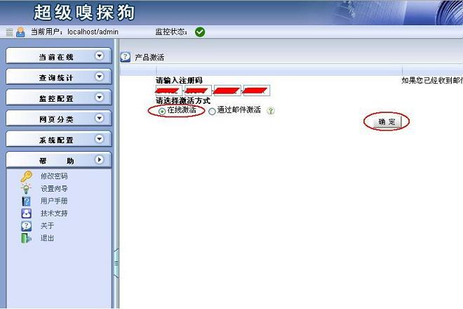 超级嗅探狗支持两种激活方式:在线激活、邮件激活。