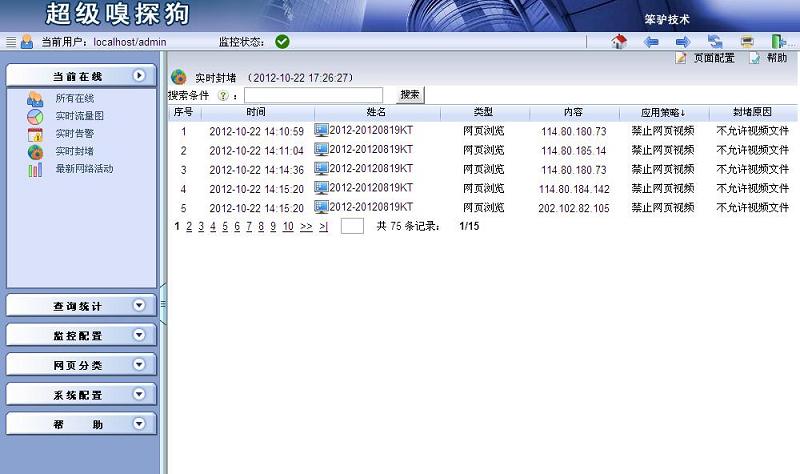 同时,您可以在超级嗅探狗的当前在线->实时封堵中,看到封堵信息。具体如下图所示: