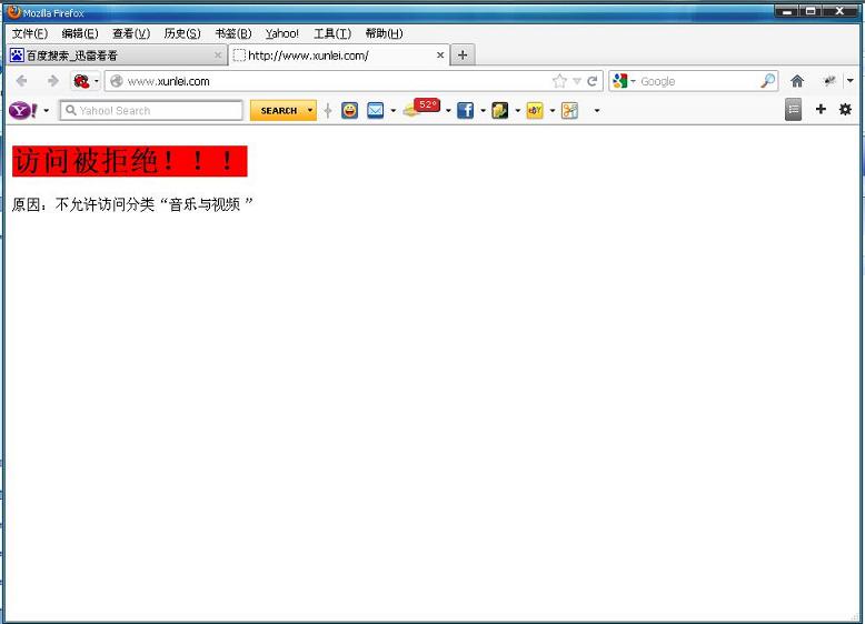 当被实施该封堵的电脑访问您所禁止的视频网站时,会出现以下封堵页面: