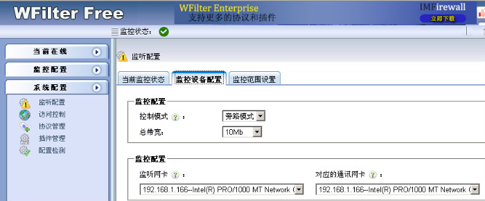 直接在PPPOE服务器上安装WFilter Free即可实现监控,关键点是要选择PPPOE服务器的内网网卡作为监听网卡。步骤如下: