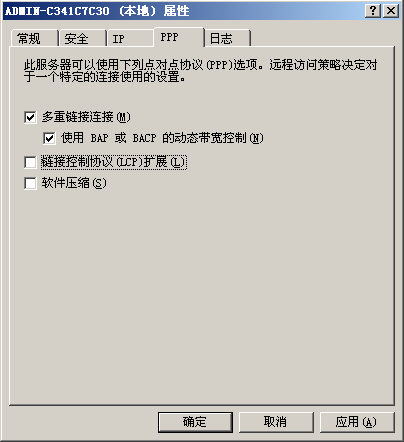 进入到路由和远程访问,选择服务器,右击属性,进入到PPP选项卡,取消软件压缩和LCP,并应用。