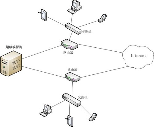 本文将介绍如何用WFilter来监控多个局域网(多个互联网接入)。由于每个镜像只监控到一个局域网,那么要在一台监控主机上监控多个局域网时,需要使用多块网卡,每块网卡都接到一个镜像端口。然后在WFilter的“系统配置”->“监控配置”中配置多个监控网卡来进行监控。