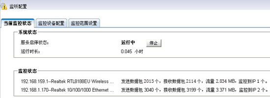 2). 在“当前监控状态”中可以看到两个局域网的监控状态