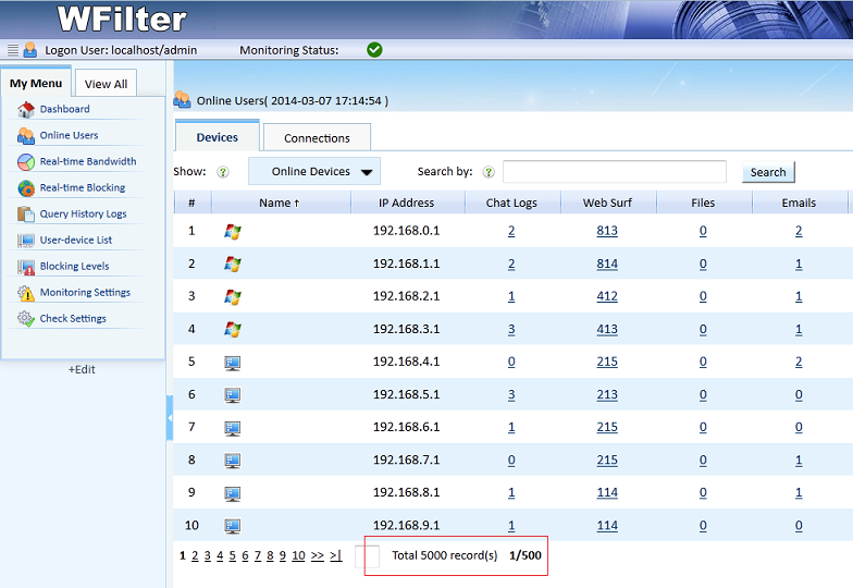 WFilter 4.1版本压力测试播报:监控5000台毫无压力