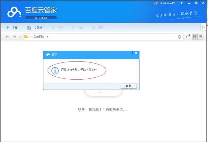 可以看到百度云网盘无法上传或下载文件。