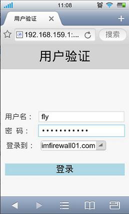 只有进行web验证后的手机才可以上网。打开浏览器,会自动弹出用户验证页面,输入域用户名,密码。如图示: