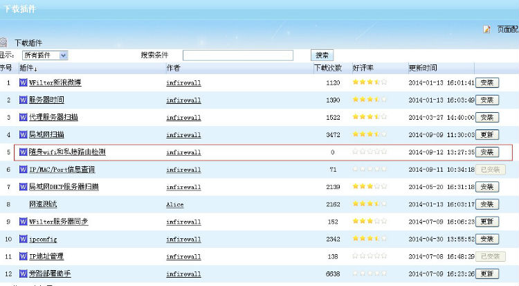 WFilter的“随身wifi和私接路由检测”插件,采用了全新的技术,基于操作系统的TCP特征和HTTP的userAgent检测,可以准确的检测局域网内是否有人私接路由和随身WiFi,并可以对检测出的主机设置惩罚措施。下面介绍如何使用该插件。