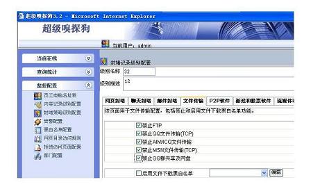 如果要禁止聊天软件和FTP上传文件,只需选择“文件传输”标签,在禁止选项前打勾即可
