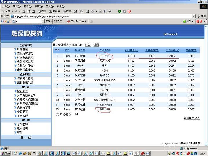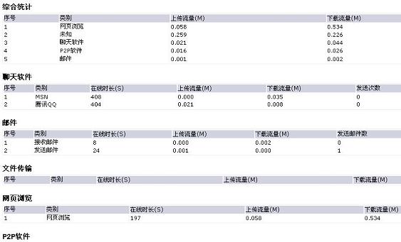 详尽的协议统计报表,可以对各类局域网中使用过的P2P软件、流媒体软件、其他各类协议一目了然。