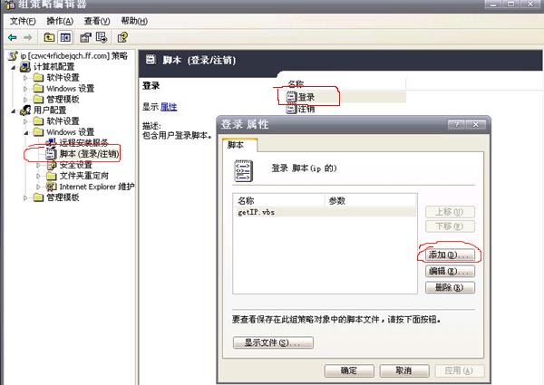 如图1.5所示,在组策略编辑器中,设置登录脚本。
