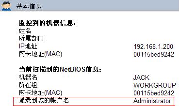 在“所有在线”页面中,点击监控电脑的姓名。如图1.6所示,如果帐户成功获取, 在“基本信息”中出现“登录到域的帐户名”信息,否则没有。