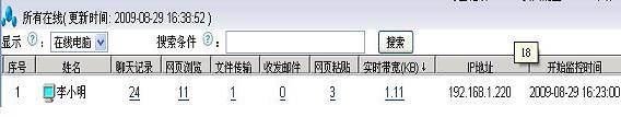 对于被监控电脑可以根据在线时长,上传流量,下载流量,消息发送次数,消息接受次数,日期等可生成各种图形或者数字报表来统计员工在MSN上行为。