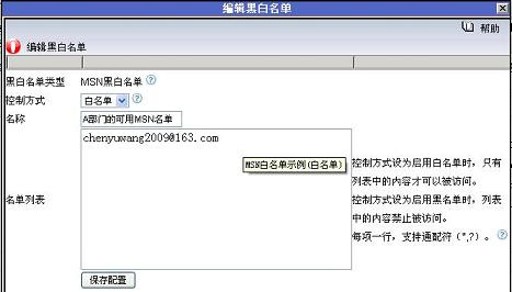 [B]方案三:[/B]设置只允许指定的MSN的ID使用,并对其内容进行记录,统计,告警等。(也可以只记录聊天次数,不记录聊天具体内容)禁止MSN传输文件行为。