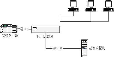 某公司,通过路由器上网,采用dlink2366做为核心交换机。网络结构图如下: