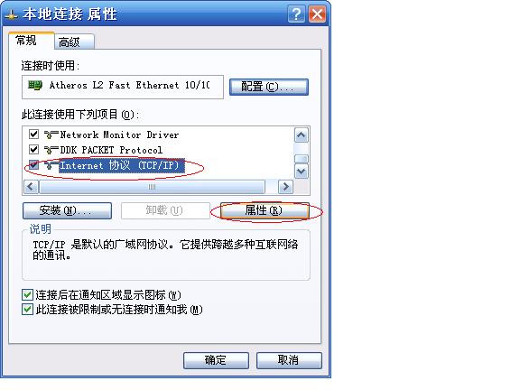 在常规选项卡中选中“Internet协议(TCP/IP)”,点击属性。
