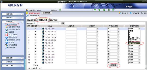 2. 在“监控配置--> 监控电脑列表--> 计算机列表”中应用封堵规则,如下图所示: