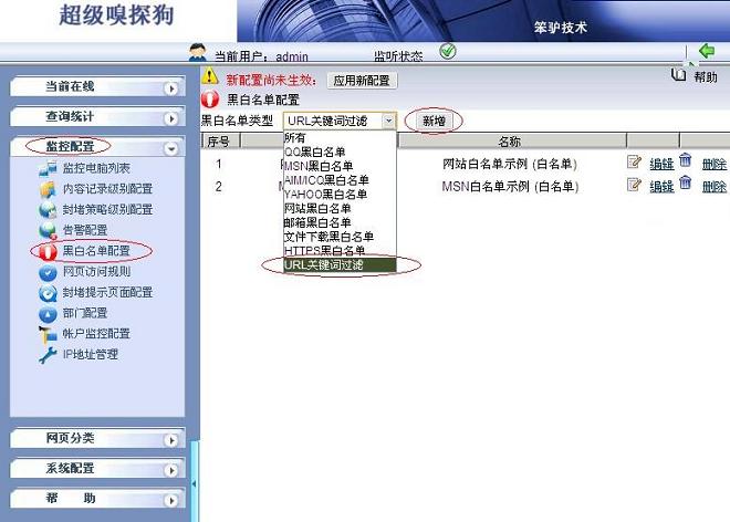 下面本文将介绍怎样通过超级嗅探狗网络监控软件来禁止好友买卖、游戏基地、抢车位。 1.在“监控配置-- > 黑白名单配置配置”新增一个URL关键词过滤,勾选上“启用URL关键词过滤”,如图所示: [ALIGN-CENTER]