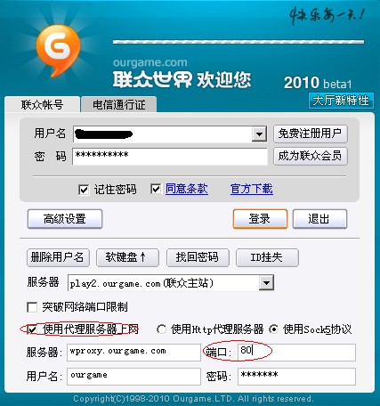 经过抓包测试,如果想要禁止联众世界需要封堵TCP443端口,但是在登录面板的高级设置里不能选择“使用代理服务器上网”,如果勾选了“使用代理服务器上网”则不能够禁止联众世界。因为代理服务器是通过80端口登录的。