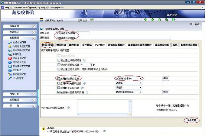 可以访问我们的博客。 1.打开超级嗅探狗“监控配置-- >封堵策略级别配置-- >新增封堵级别”,具体配置如下图所示: