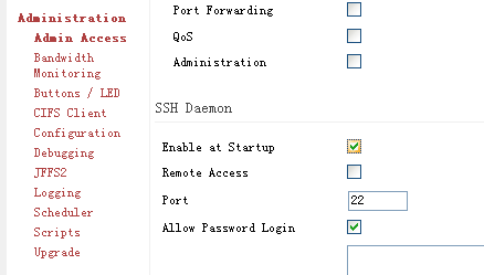 在"Administration" - "Admin Access"中启用"SSH Daemon"。
