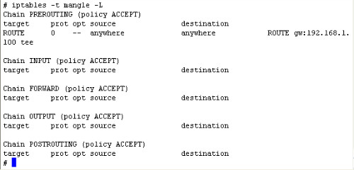 要使"--tee"选项能够生效,必须启用"ipt_ROUTE"模块,该模块默认是不启用的。