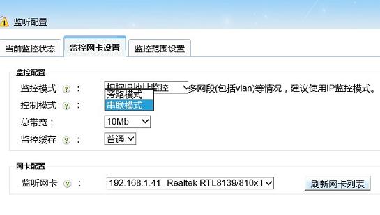 在WFilter里选择串联模式,监听内网网卡,保存并应用新配置后即可实现监控。